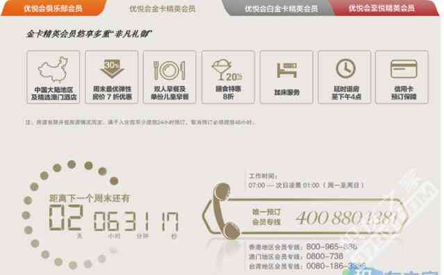 如果你身边有人是优悦会至悦级会员(普通会员<金卡会员<白金会员<至悦会员),抓紧问问他是不是还没有使用他的至悦权益,该权益可是可以直接将你升级为白金会员哦。省去你办中信IHG金卡的过程了。而白金会员的周末折扣可是比金卡会员更多,低至6折。
