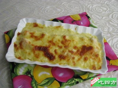 2011-09-07 ]鲜虾芝士焗土豆 原料:鲜虾仁、土豆、芝士、色拉酱 做法: 1、土豆蒸熟捣成泥,加少许盐搅匀,铺在浅盘里。 2、鲜虾仁对半切薄,摆在土豆泥上。 3、涂上色拉酱 4、芝士刨成丝,撒在…… 查看全文>> -