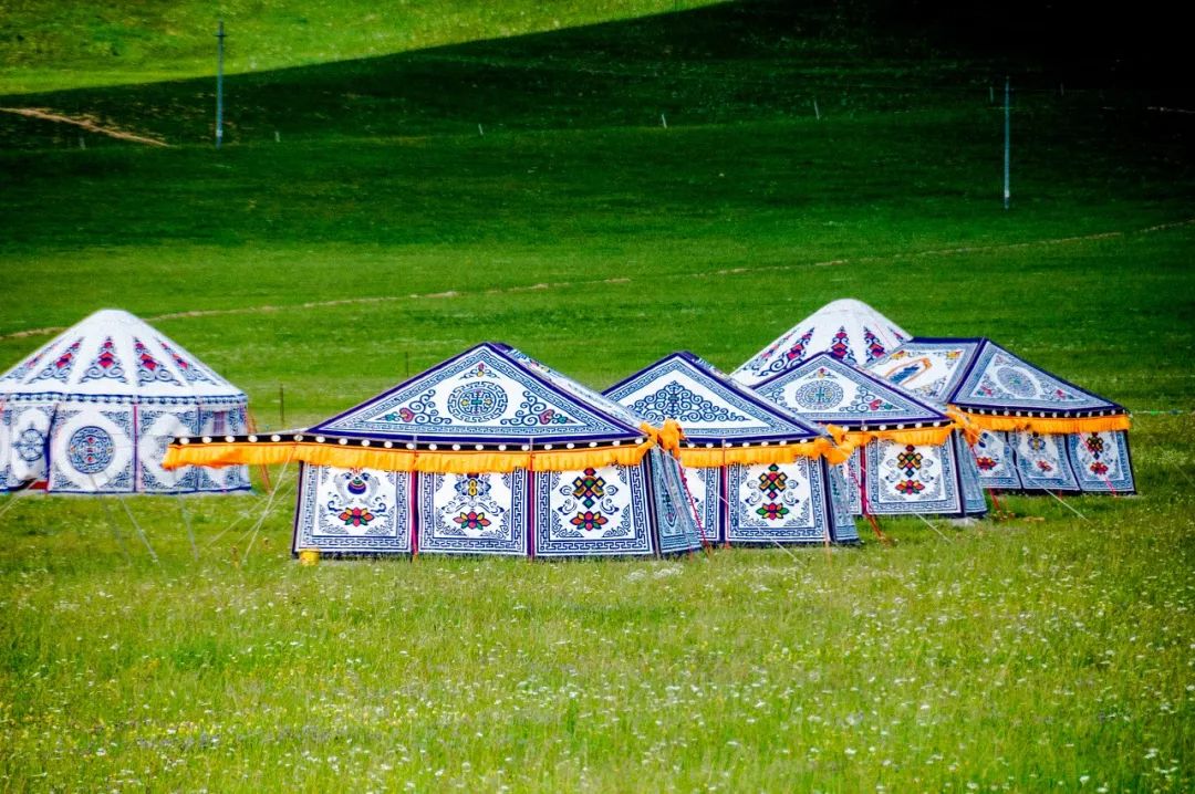 金黄色的油菜花,迎风飘香;牧民的帐篷,星罗棋布;成群的牛羊,飘动如云……静静的站在那里天荒地老,不愿离去。
